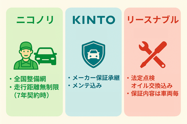 保証・サポート比較|手厚さならニコノリ・KINTO ONE、中古特有の不安は要確認