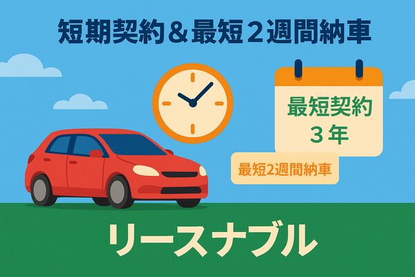 • リースナブル:月額6,600円〜、契約期間は3・5・9年から選べ、最短2週間で納車可能。低価格+短期契約+即納性をすべて満たす